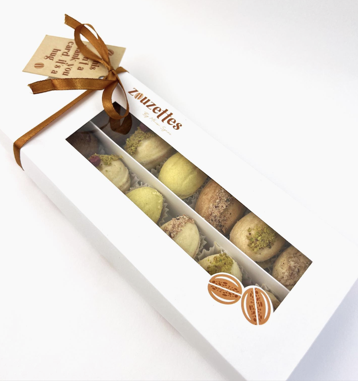 Chaque zouza est déposée à la main dans son écrin de papier de soie. Un ruban doré scelle la boîte — comme les secrets qu'on ne partage qu'avec ceux qu'on aime.